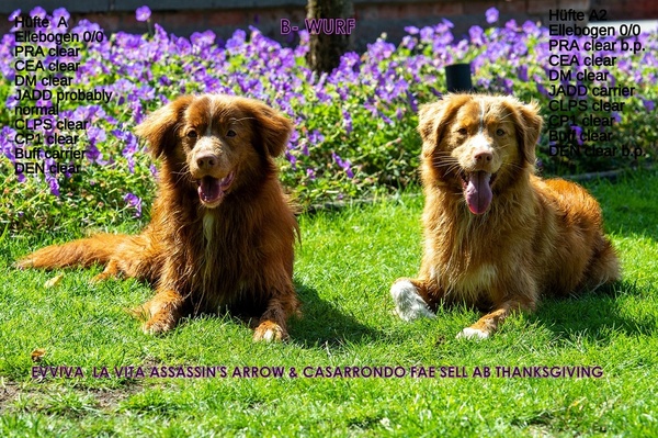 Deswegen geben wir unsere Hunde nur in sehr gute Hände. Wir möchten die zukünftigen Besitzer sehr genau kennenlernen, ihre Absichten bezüglich eines Nova Scotia Duck Tolling Retrievers verstehen und hinterfragen. Unsere Ansprüche an die Käufer sind sehr hoch, wir sollten uns sowohl auf dem Gebiet der Gesundheitsfürsorge ( Fütterung, Impfung, Röntgen) als auch auf dem Gebiet der Beschäftigung mit dem Hund gut beraten bzw. einigen.