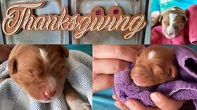 Der 2. Welpe ist ein Rüde mit 350 gr und wurde um 6.17h geboren. Er heißt Thanksgiving At Sunrise Arthur. Er trägt kein Bändchen.